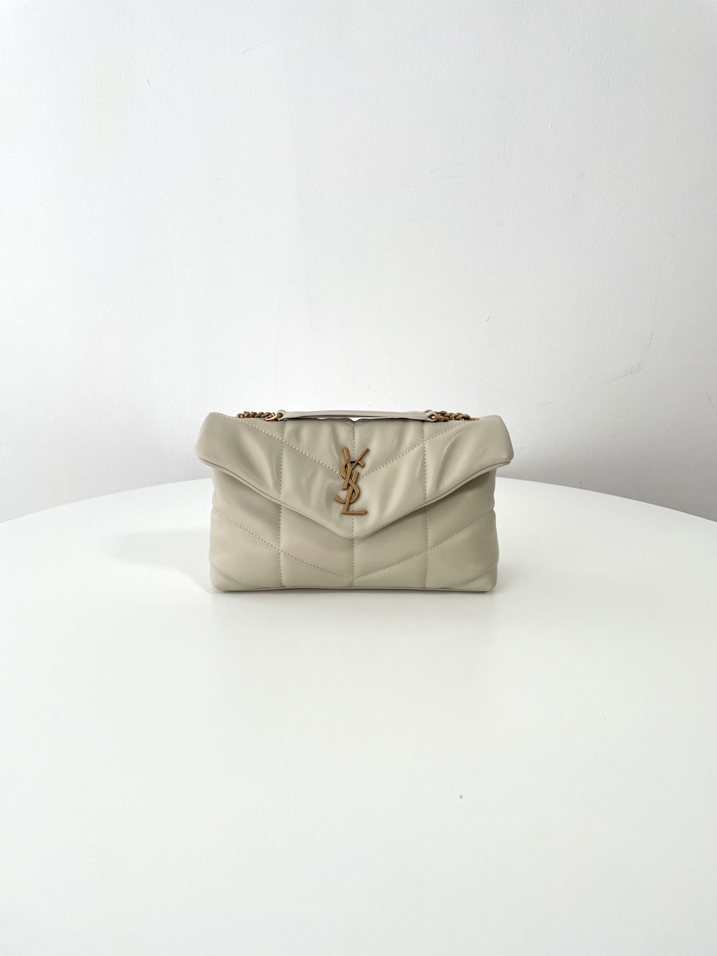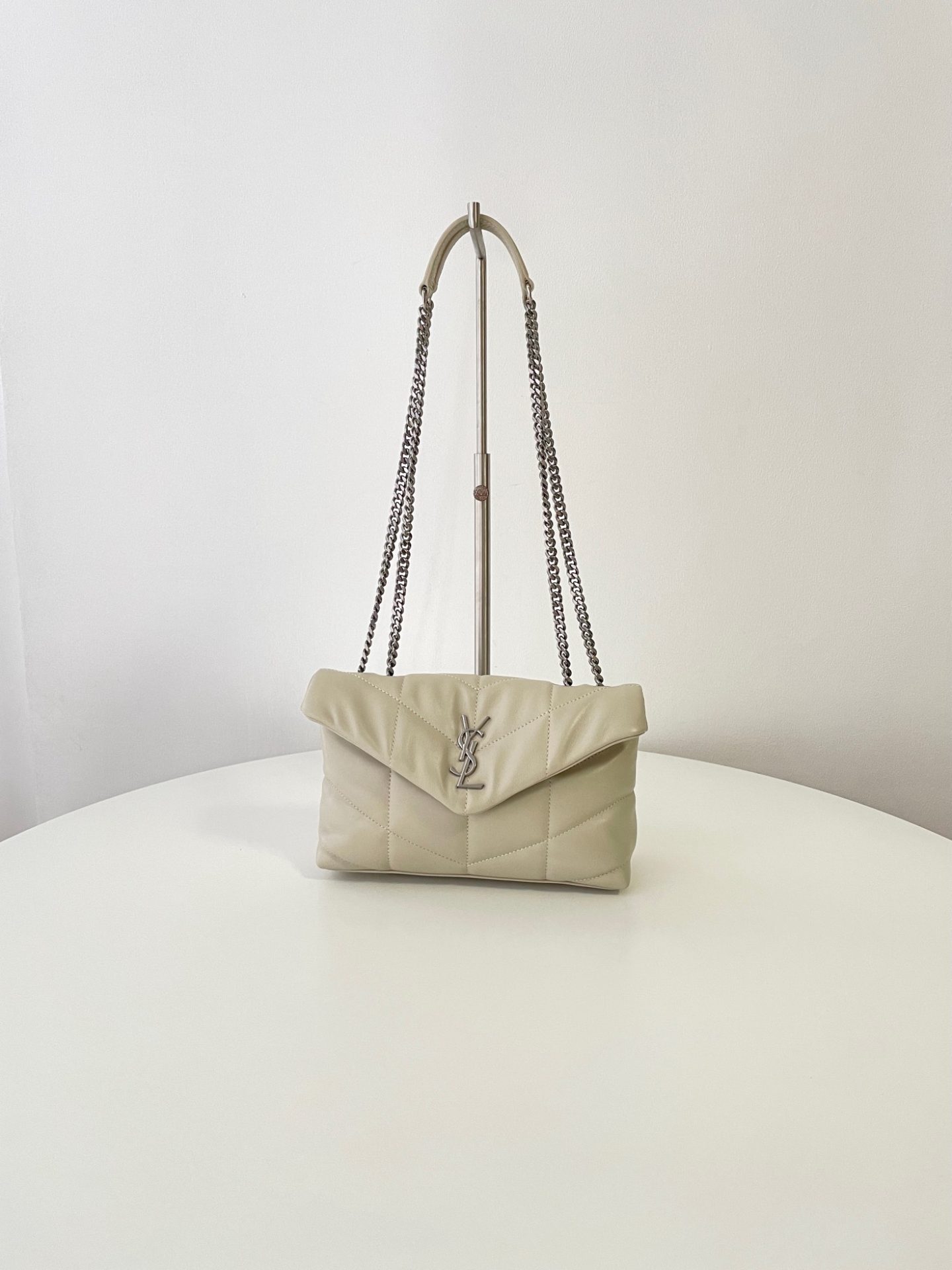 생로랑 푸퍼 토이 백 퀼티드 램스킨 블랑 빈티지 Saint Laurent Puffer Toy Bag In Quilted Lambskin Blanc Vintage