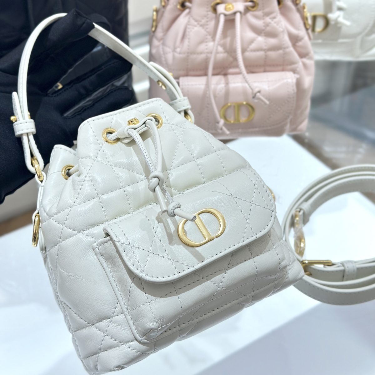 디올 카로 미니 버킷백 라떼 Dior Caro Mini Bucket Bag Latte