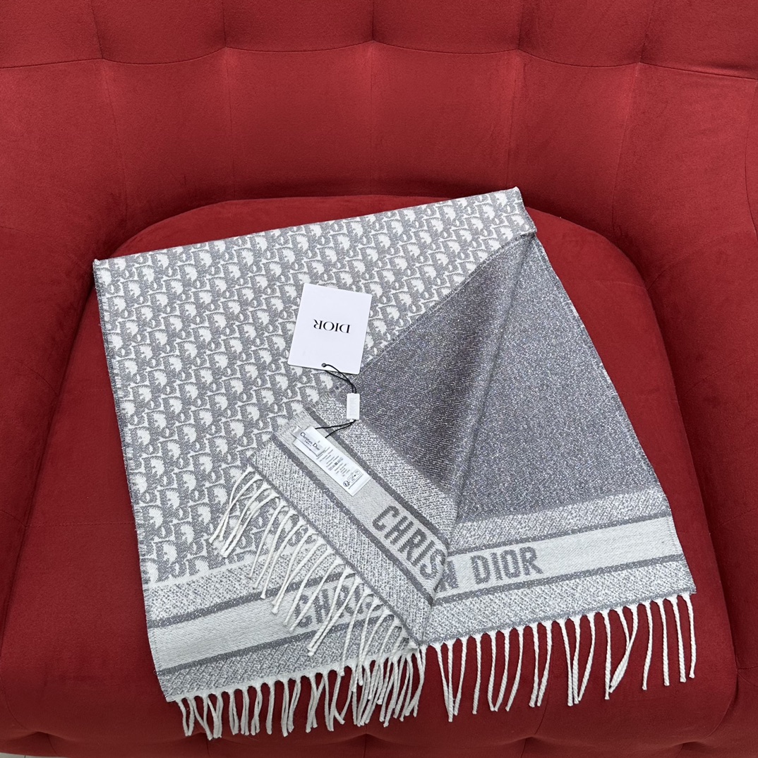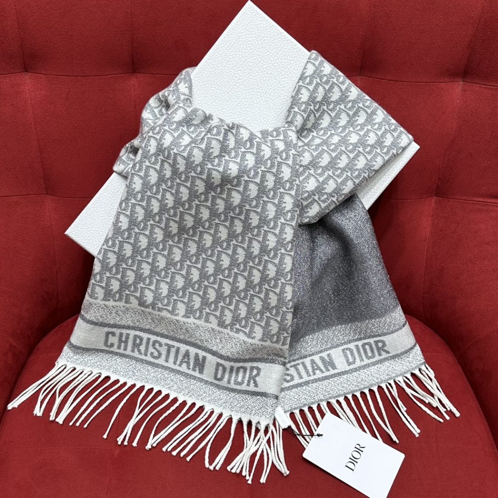 디올 까나쥬 캐시미어 버진 울 머플러 그레이 에크루 Dior Cannage Cashmere Virgin Wool Muffler Gray EcruContact(KAKAO TALK)(ZALO CHAT)