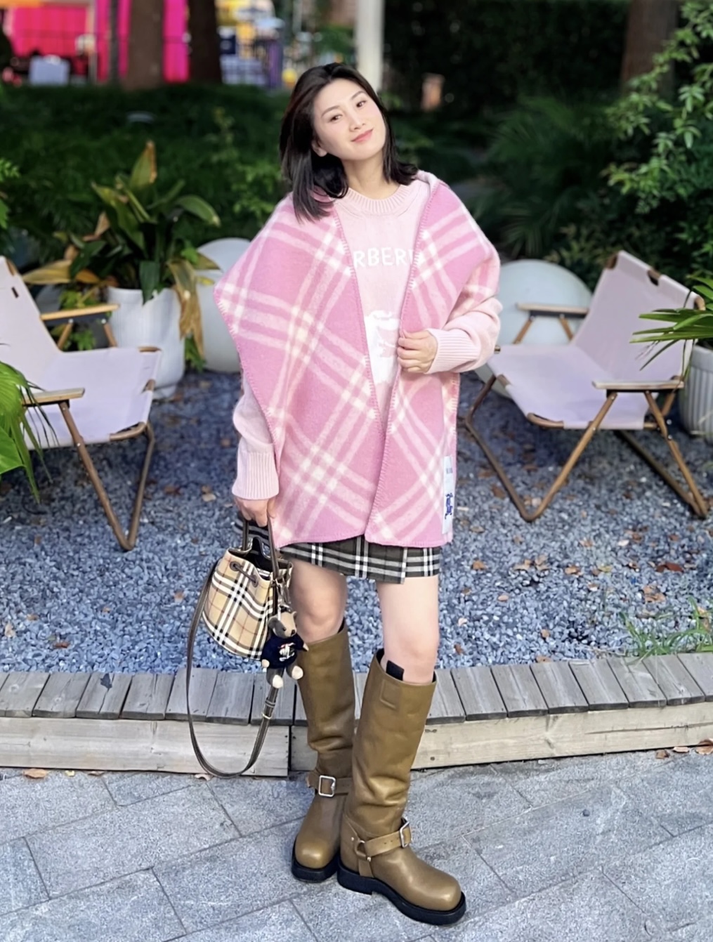 버버리 콘트라스트 체크 울 캐시미어 케이프 아카이브 베이지 다크 버치 브라운 Burberry Contrast Check Wool Cashmere Cape Archive Beige Dark Birch BrownContact(KAKAO TALK)(ZALO CHAT)