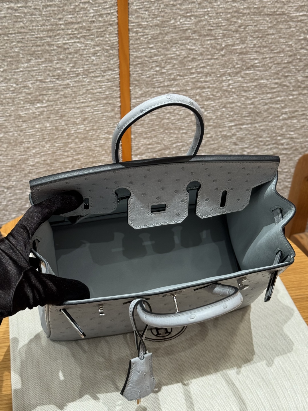 Leather:KK ostrich imported From France which originally from South Africa.
