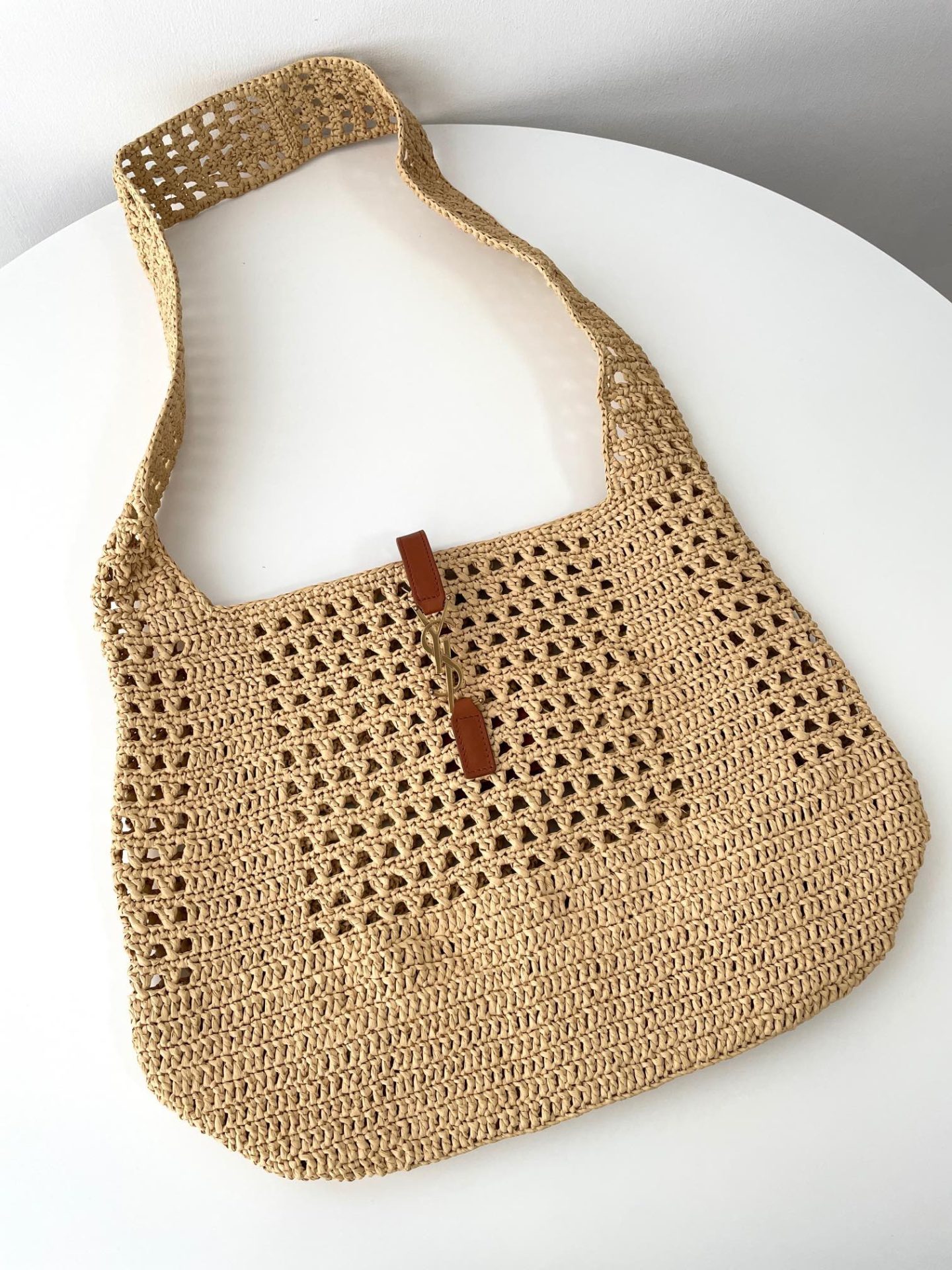 Saint Laurent Hobo Raffia Bag in Crochet and Smooth Leather Naturel 생로랑 호보 라피아 백 크로쉐 스무스 레더 내츄럴Contact(KAKAO TALK)(ZALO CHAT)