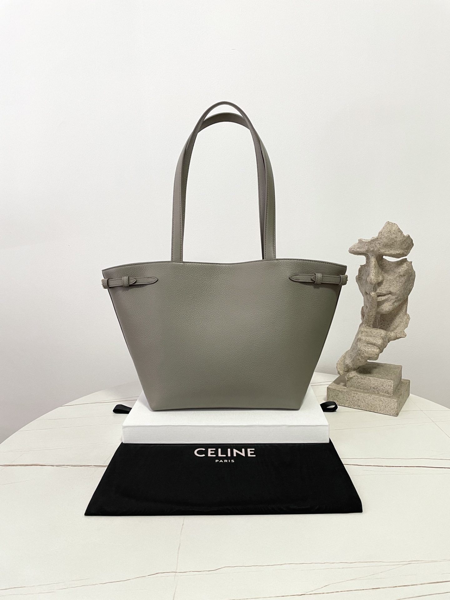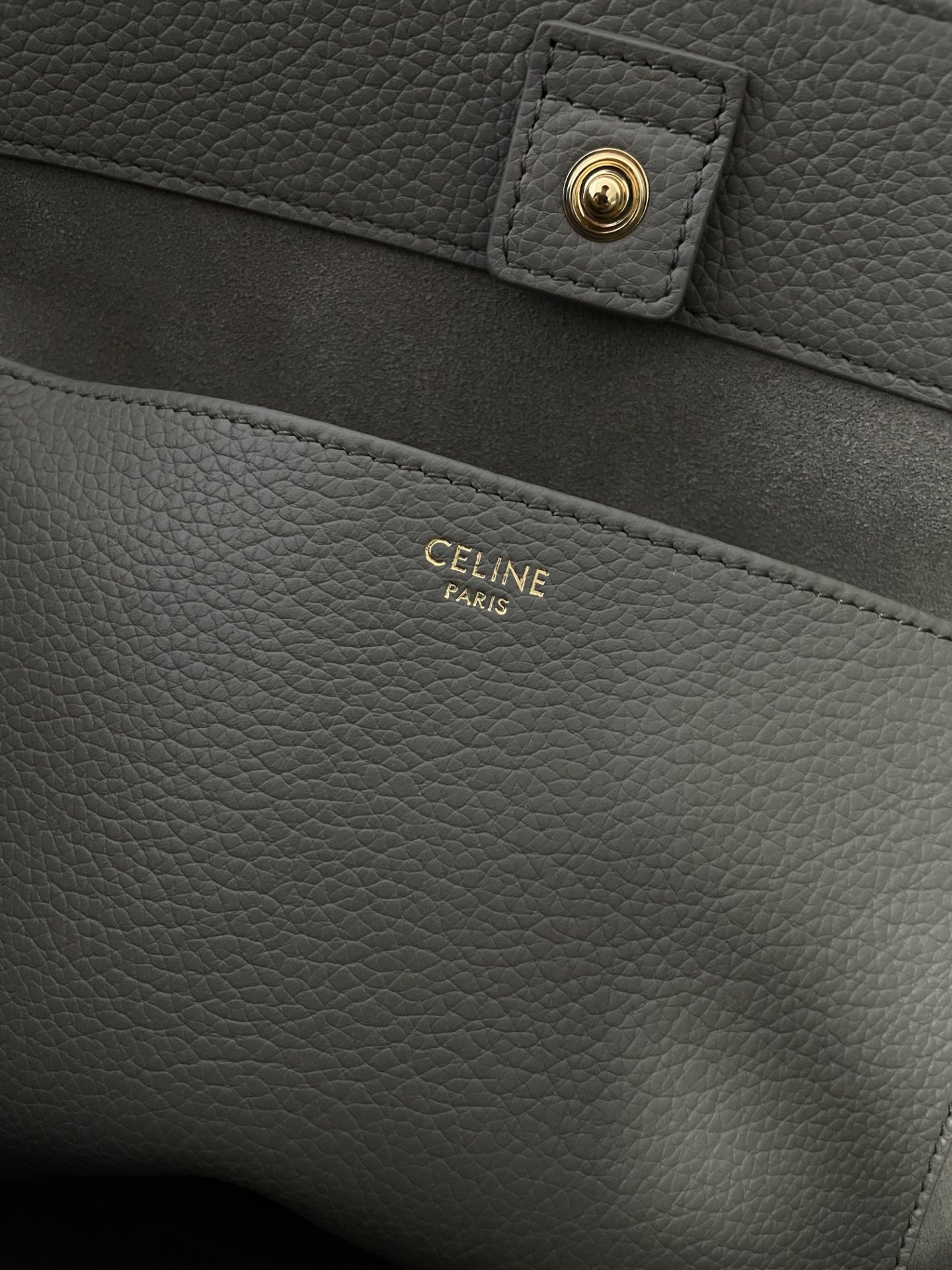 Celine Small Sangle Bucket Bag in Soft Grained Calfskin Grey 셀린느 소프트 그레인드 카프스킨 상글 버킷백 그레이Contact(KAKAO TALK)(ZALO CHAT)
