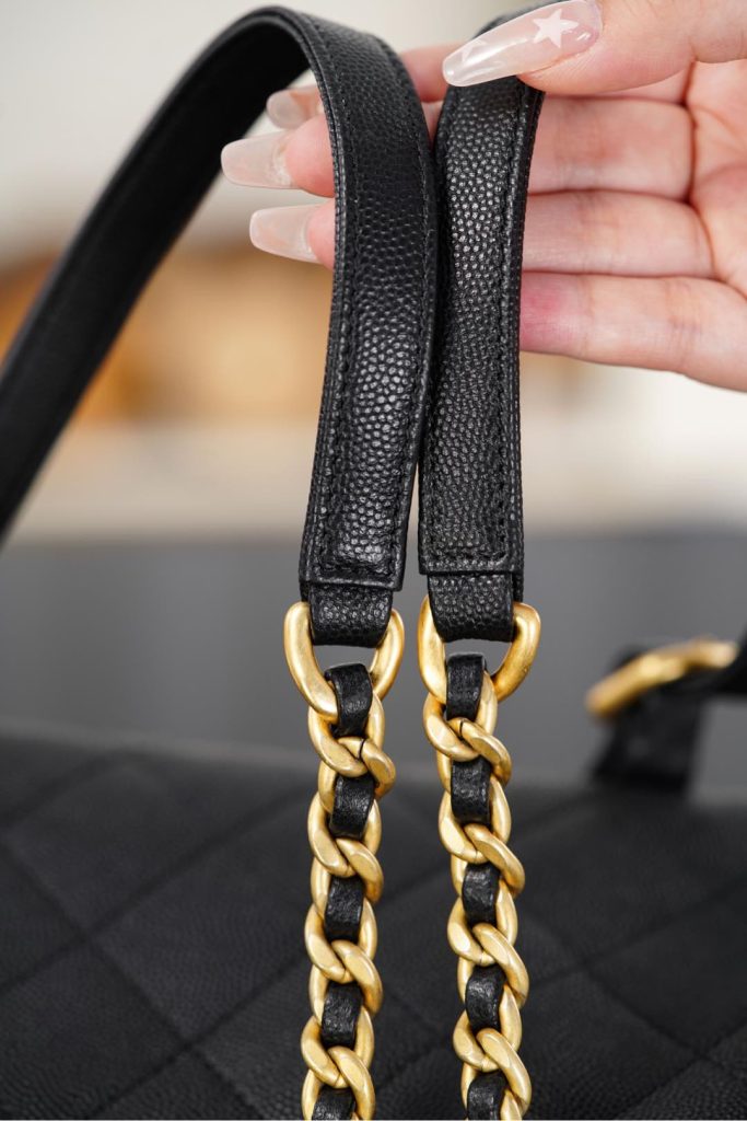 Chanel Mini Shopping Bag Shiny Aged Calfskin & Gold Black 샤넬 미니 쇼핑백 샤이니 빈티지 카프스킨 & 골드 메탈 블랙Contact(KAKAO TALK)(ZALO CHAT)