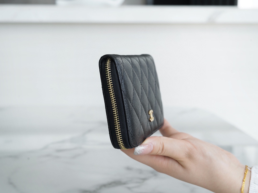 Chanel Small Classic Flap Wallet Grained Calfskin & Gold Black 샤넬 클래식 스몰 플랩 지갑 그레인드 카프스킨 & 골드 메탈 블랙 (정품가죽)Contact(KAKAO TALK)(ZALO CHAT)