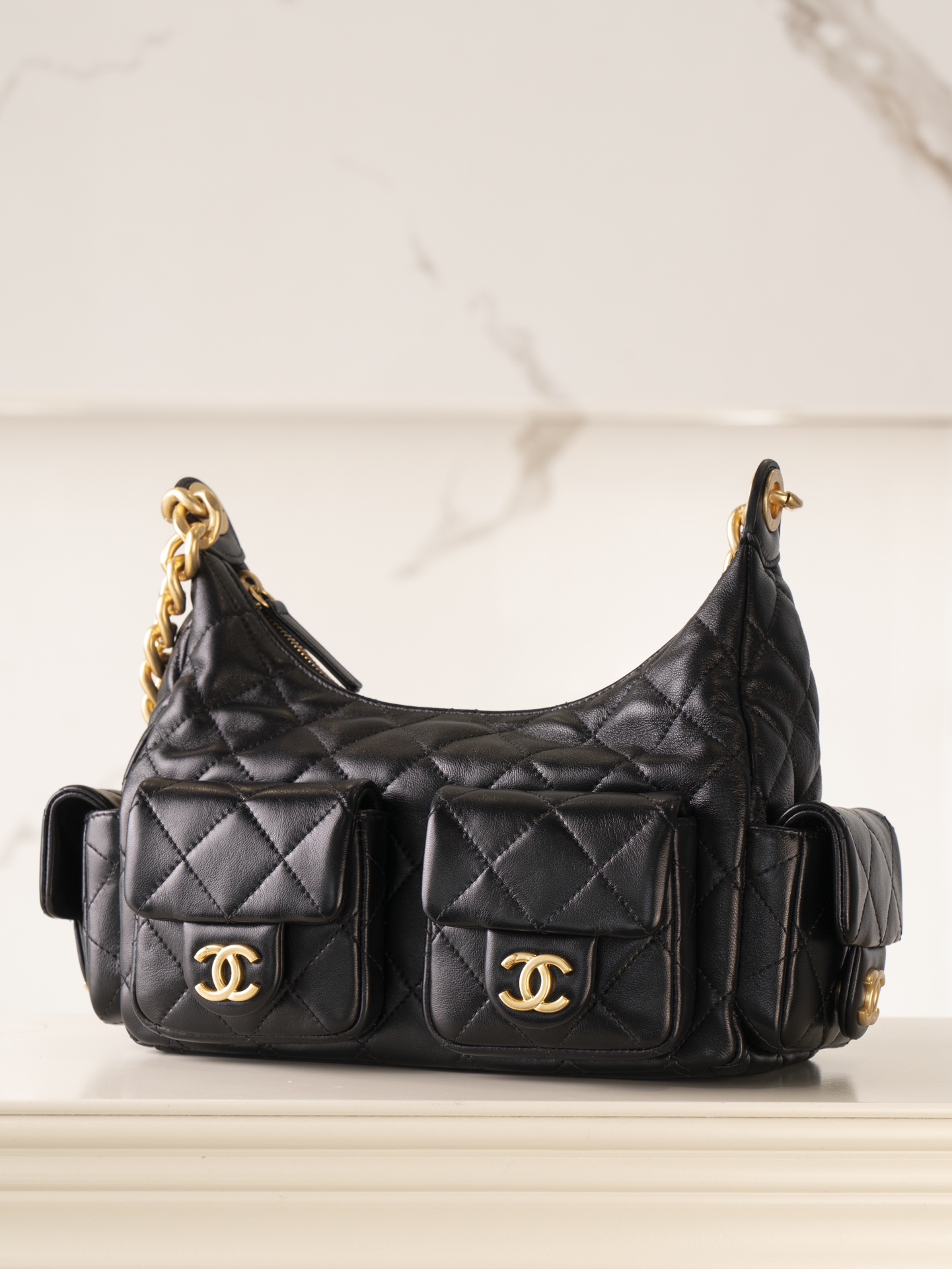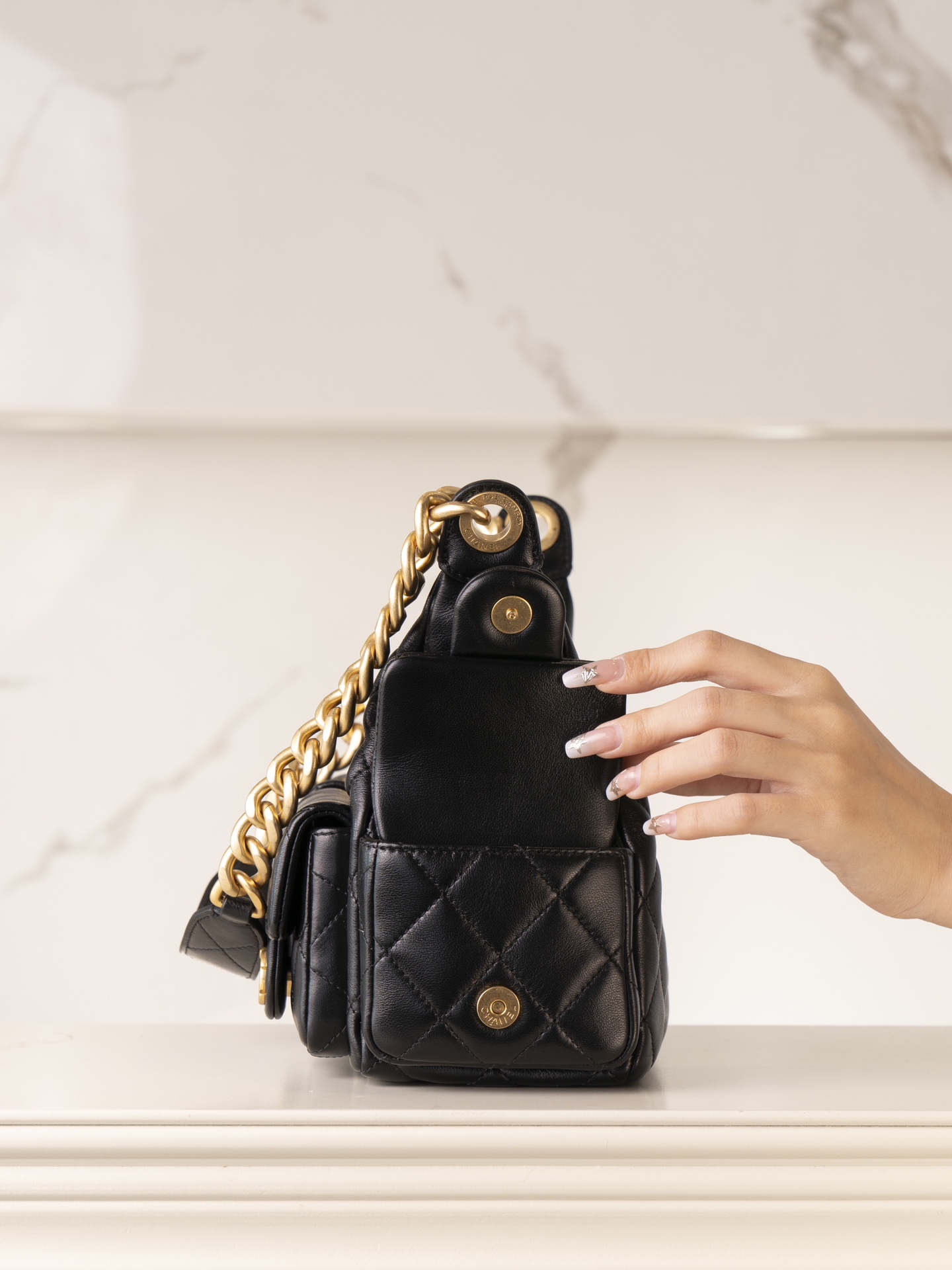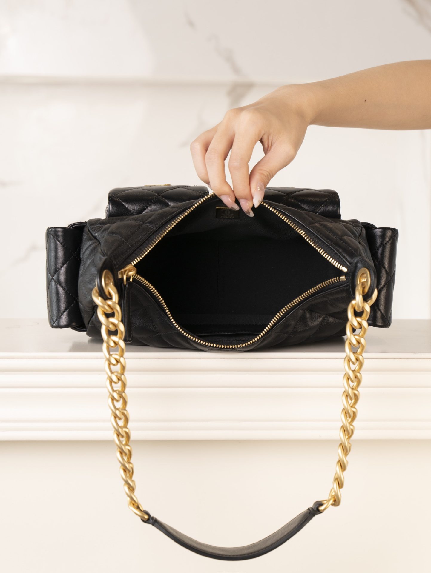 Chanel Mini Shopping Bag Shiny Aged Calfskin & Gold Black 샤넬 미니 쇼핑백 샤이니 빈티지 카프스킨 & 골드 메탈 블랙