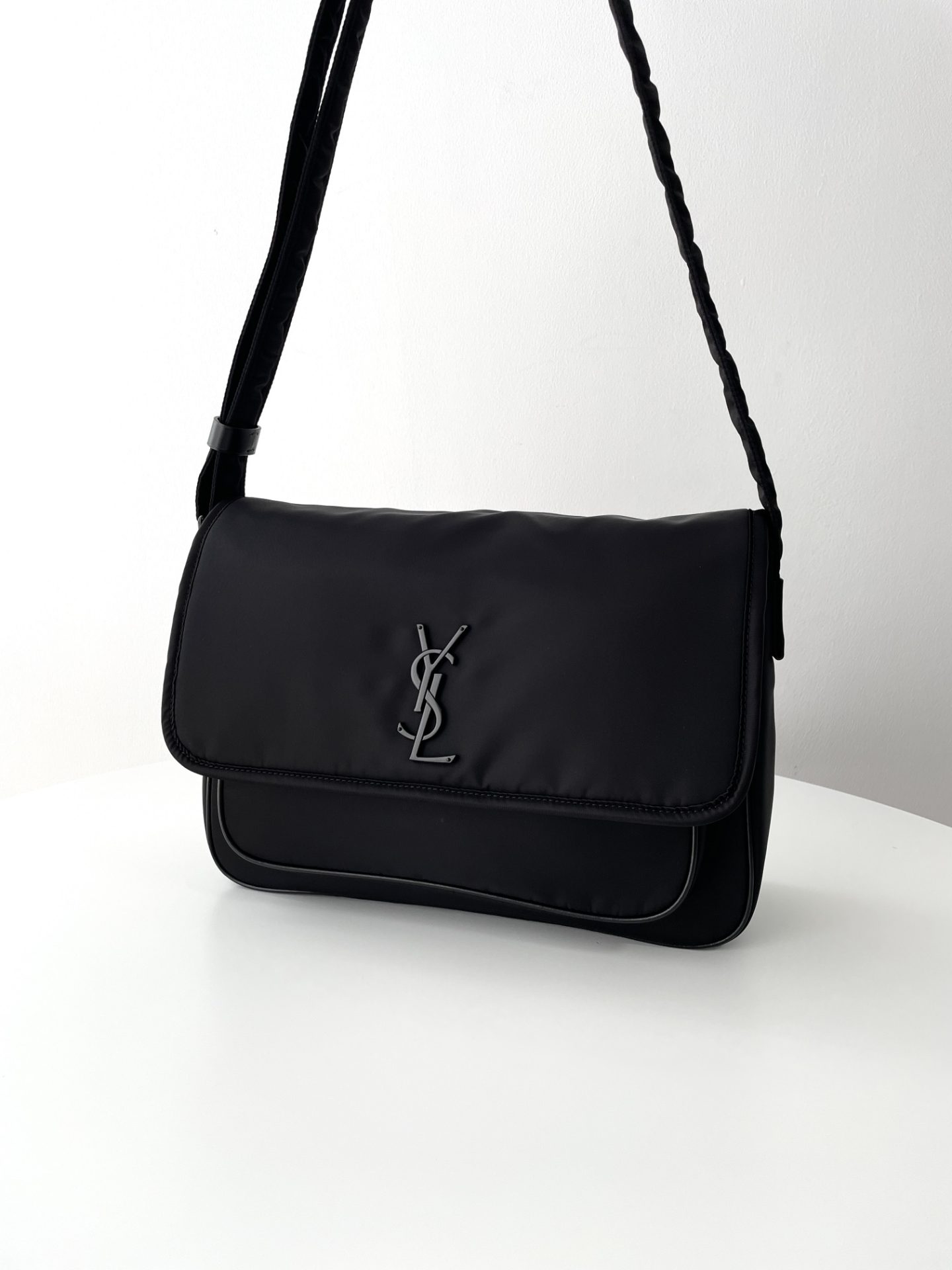 Saint Laurent Black Monogram Niki Medium Bag with Silver Chain Strap in Crinkled Vintage Leather Black 생로랑 크링클 빈티지 레더 블랙 모노그램 니키 미디움백 실버 체인 스트랩 블랙Contact(KAKAO TALK)(ZALO CHAT)