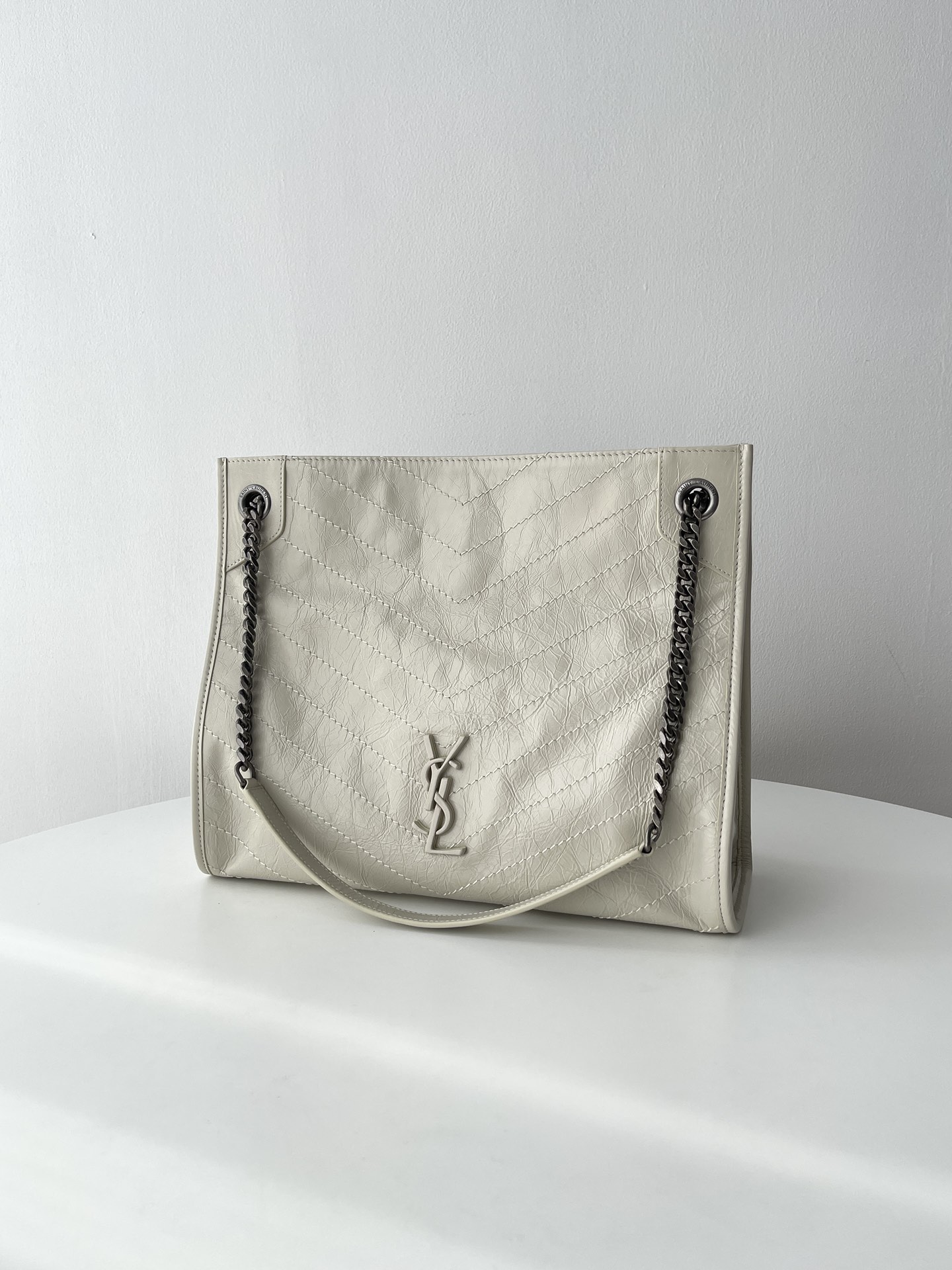 Saint Laurent Niki Medium Chain Bag In Crinkled Vintage Vegetable-Tanned Leather Greyish Brown 생로랑 니키 미디움 체인 백 크링클 빈티지 베지터블 탠 레더 그레이쉬 브라운Contact(KAKAO TALK)(ZALO CHAT)