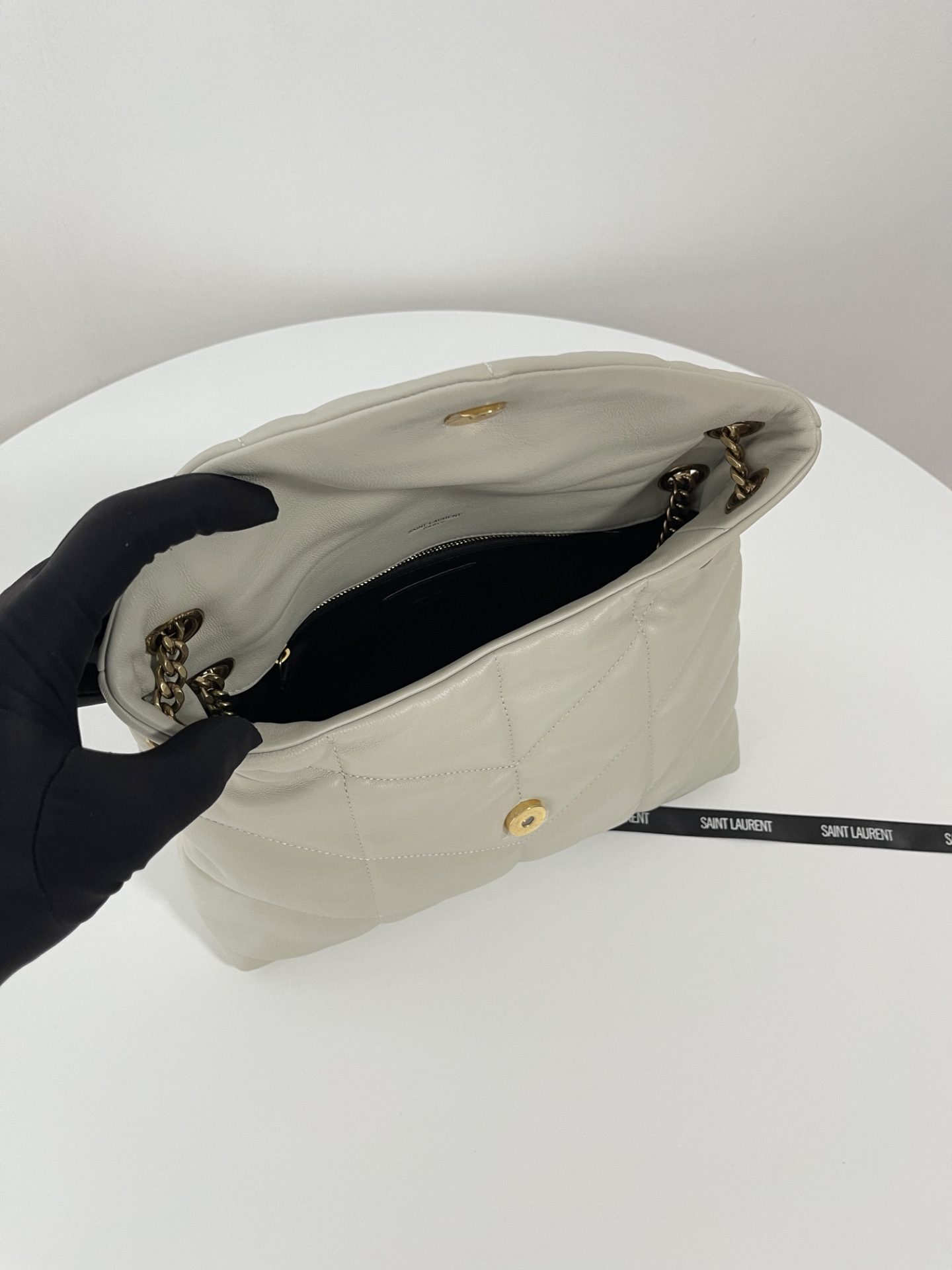 Saint Laurent Le 5 A 7 Supple Large in Grained Leather Blanc Vintage 생로랑 LE 5 A 7 서플 라지 그레인드 레더 블랑 빈티지Contact(KAKAO TALK)(ZALO CHAT)