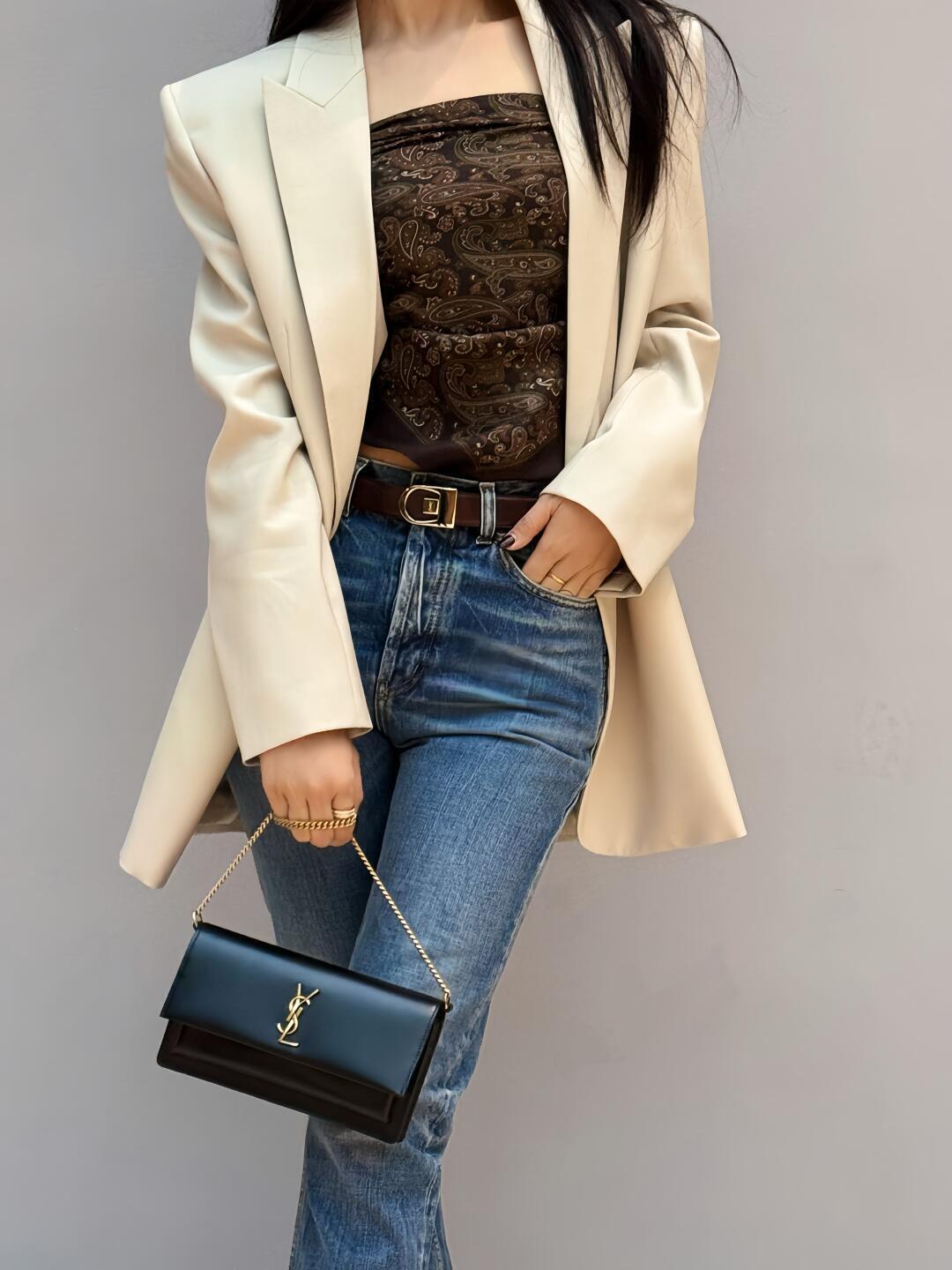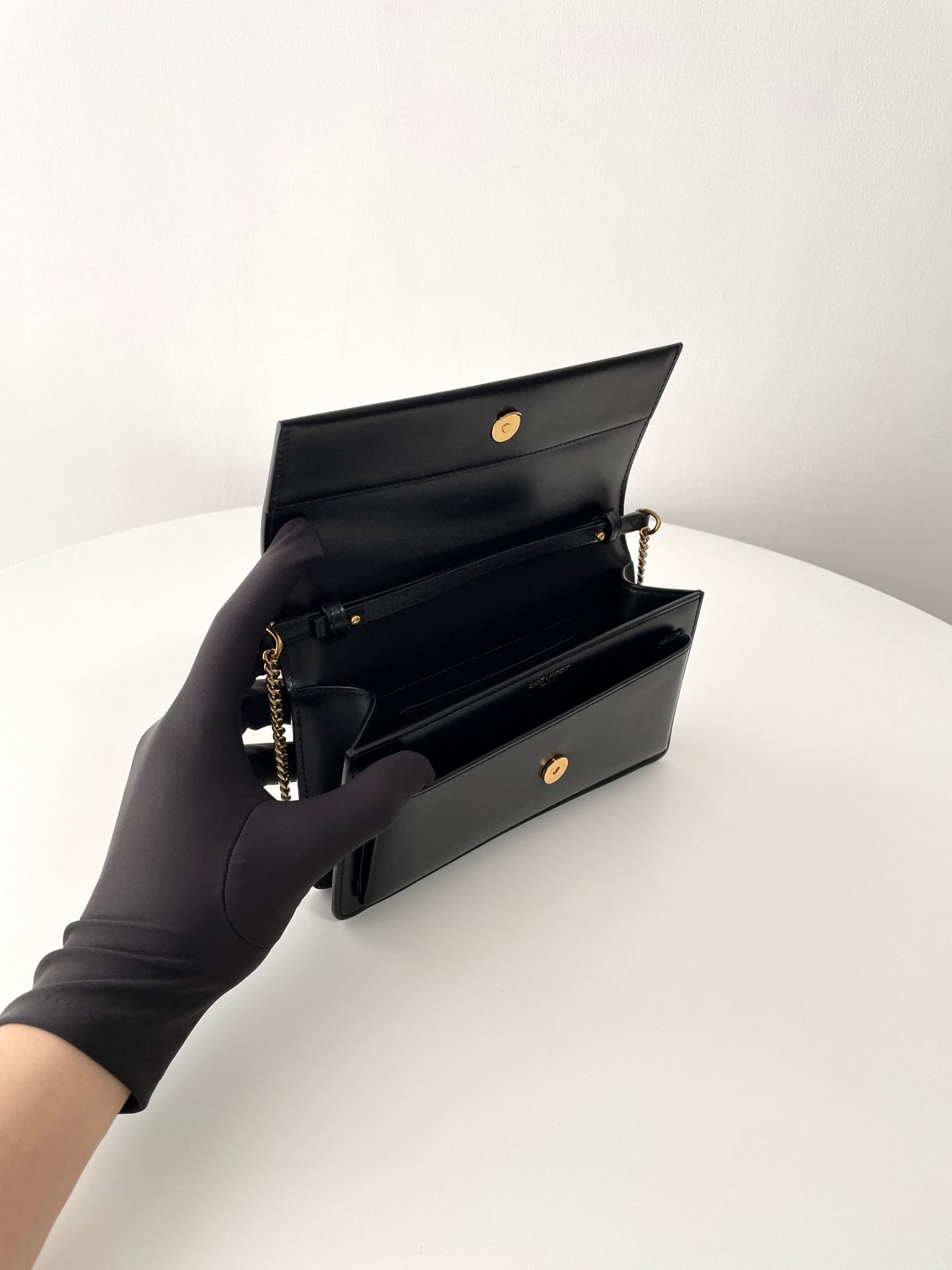 Saint Laurent Sunset Clutch in Box Noir 생로랑 선셋 클러치 박스 느와르