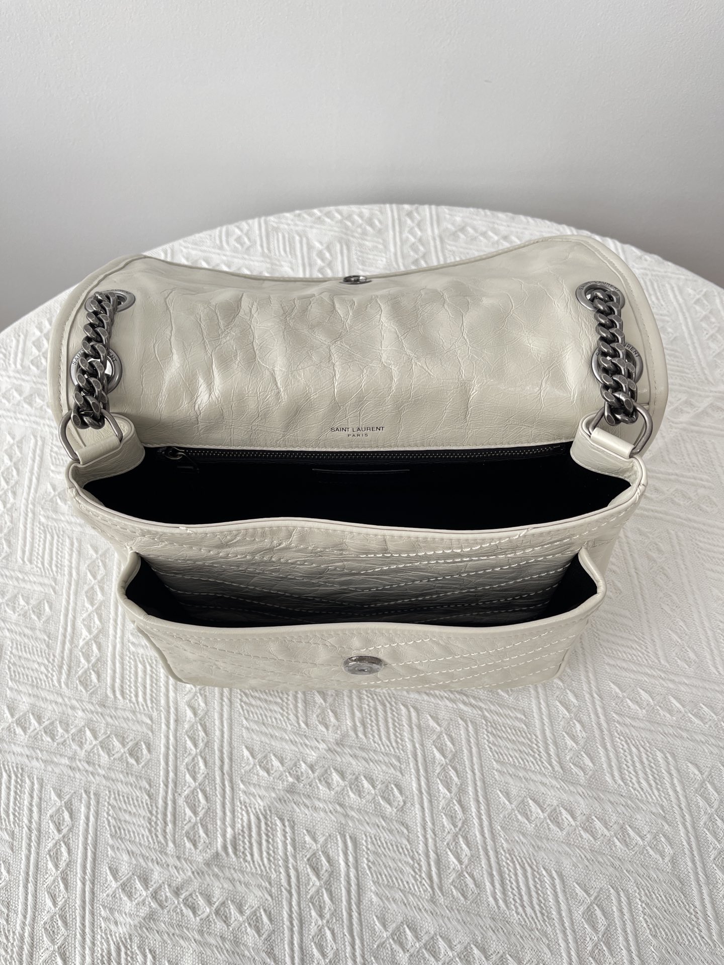 Saint Laurent Niki Medium Chain Bag In Crinkled Vintage Leather Noir 생로랑 니키 미디움 체인 백 크링클 빈티지 레더 느와르Contact(KAKAO TALK)(ZALO CHAT)